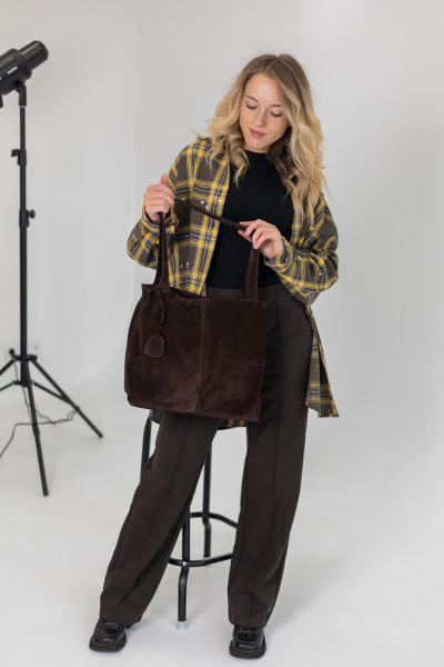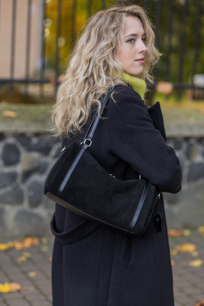 4. Штучна замша. Сумка з цього матеріалу набагато простіша в догляді, ніж із натуральної замші – її можна прати та сушити на відкритому повітрі. Такі сумки жіночі еластичні й міцні, завдяки чому користується величезною популярністю. Це тоути, бананки та інші.