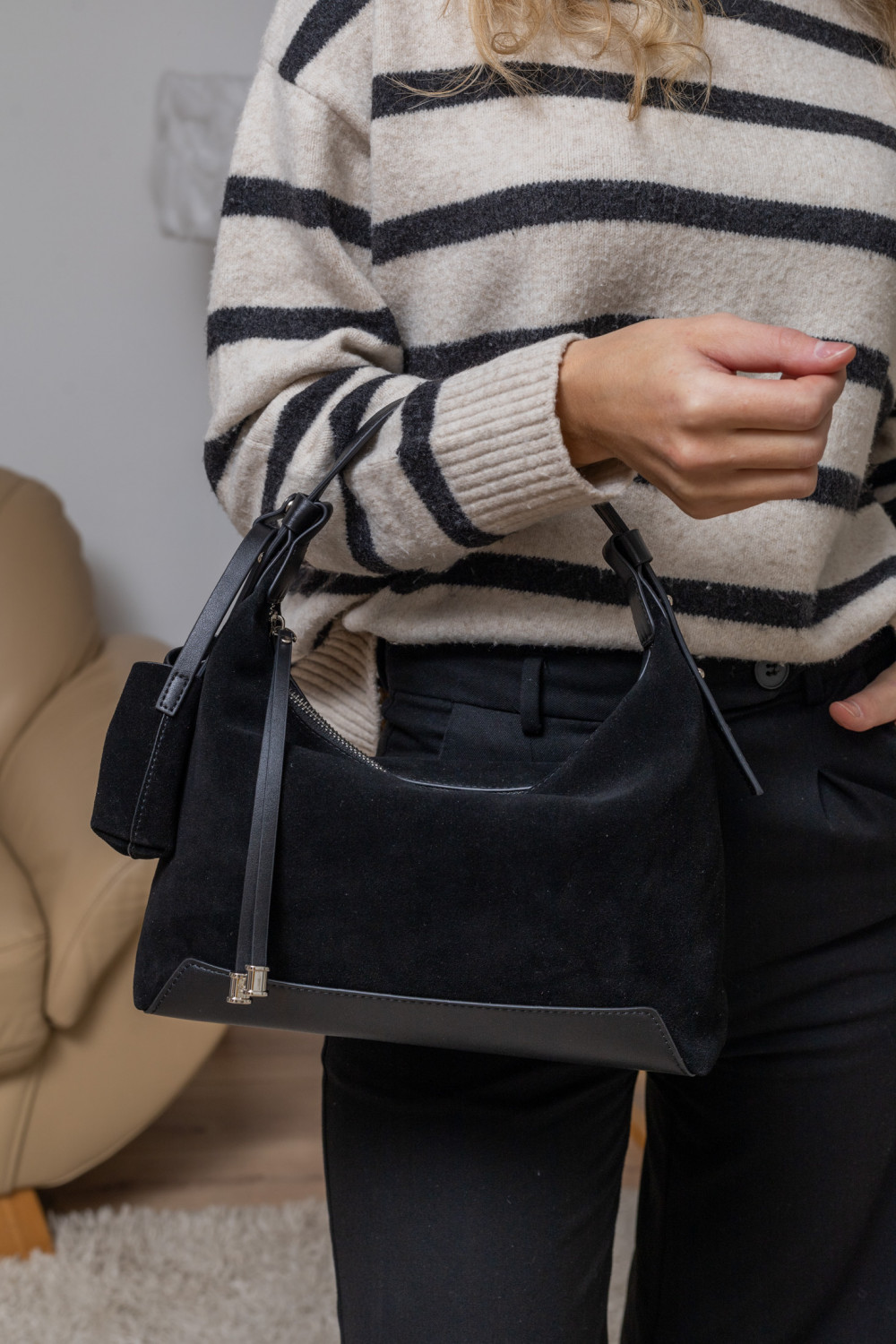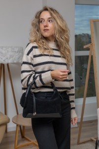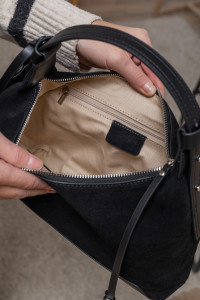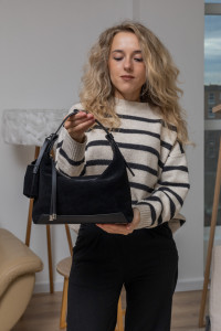 Коли хочеться чогось по-справжньому затишного, жіночного й водночас практичного — сумочка Бонна саме те. М’яка, наче хмаринка, продовгуватого розміру, невелика, проте містка — створена для тих, хто цінує стиль і не готовий жертвувати комфортом. З першого дотику розумієш: це натуральна замша. Така приємна, оксамитова, з легким теплим ворсом, який додає глибини кольору в похмурі зимові дні. Замша м’яка на дотик, не залишає слідів від пальців і з часом набуває ще благороднішого вигляду.