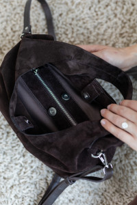 Сумка має три продумані відділення, щоб усе було на своєму місці. Центральна кишеня на блискавці надійно захистить цінні речі, а бічні відділення з магнітними кнопками зручні для речей, які потрібні під рукою. Усередині — міцна поліестерова підкладка та дві кишеньки, одна на блискавці, друга — вільного доступу, для дрібниць. Напівкругла ручка дозволяє носити сумку в руці чи на плечі, а знімний регульований ремінець дає змогу налаштувати її під себе.