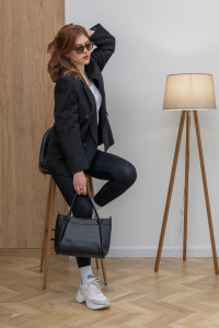 Сумка-шопер Ромі — це поєднання практичності, витонченості та сучасного дизайну. Створена для жінок, які прагнуть виглядати бездоганно в будь-якій ситуації. Виготовлена з преміальної екошкіри, приємна на дотик, з міцною поліестеровою підкладкою. Сумка — середнього розміру, елегантна та функціональна. Цупке зміцнене дно надає моделі стійкості на будь-якій поверхні, зберігаючи форму навіть при повному завантаженні. Просторе основне відділення надійно застібається на блискавку та доповнене двома внутрішніми кишеньками: одна на блискавці, для безпечного зберігання цінних речей, а інша — з вільним доступом до дрібниць, таких як телефон чи помада. З тильного боку сумки розташована зовнішня кишенька на блискавці — місце для ключів, щоб вони завжди були під рукою.