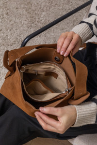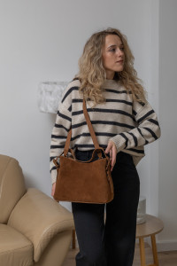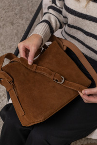 Дно цупке— можна ставити на різні поверхні, форма не втратиться і замша не пошкодиться. Теракота — це та рідкісна сумка, яка дружить і з пуховиком, і з кашеміровим пальто, і з джинсами й кросівками, і з сукнею-міді на побачення. Вранці — в офіс, вдень — на бранч, ввечері — на прогулянку містом. Тепла, м’яка, трохи недбала й безмежно стильна. Теракота не просить підлаштовуватися під неї. Це вона підлаштовується під ваше життя, і робить його трохи красивішим.